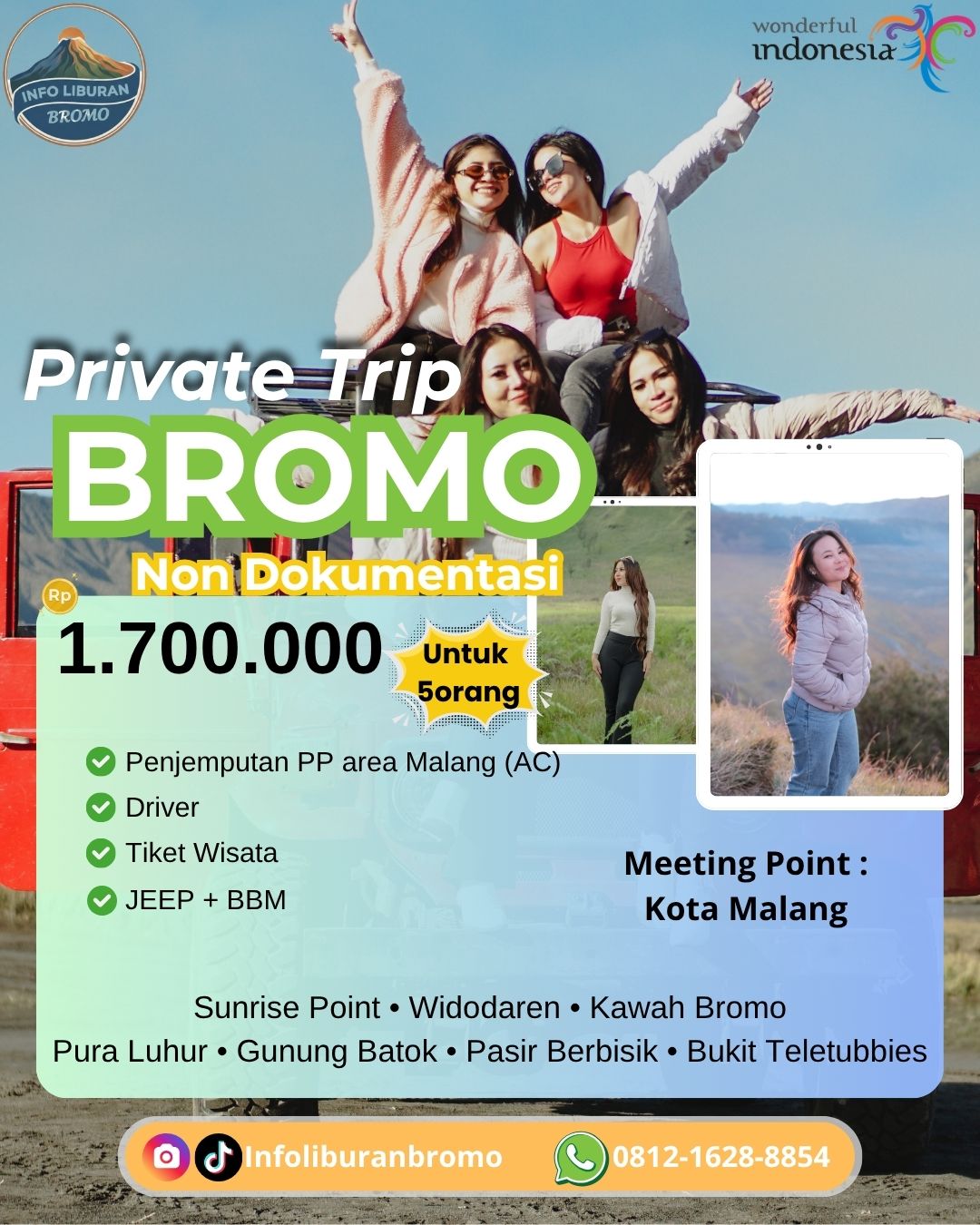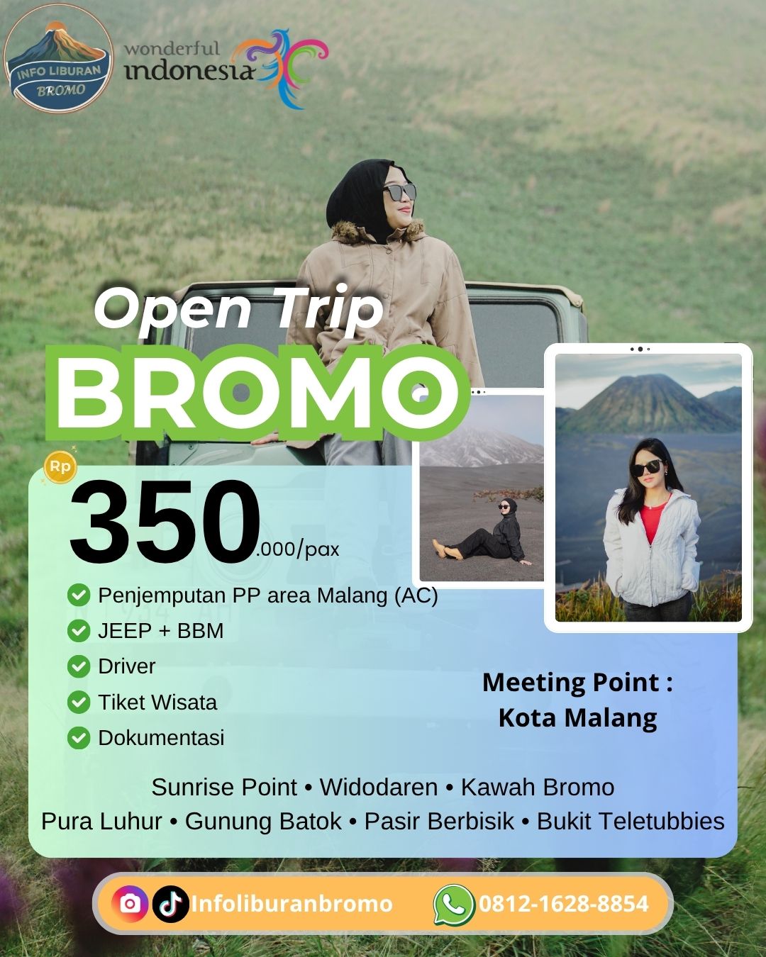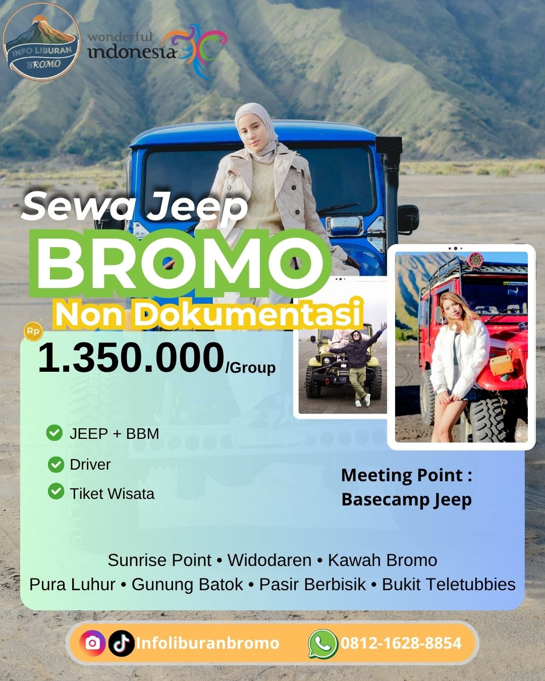 Destinasi Spot Sunrise Bromo - Lembah Widodaren - Kawah Bromo - Pura Luhur - Gunung Batok - Pasir Berbisik - Bukit Teletubis