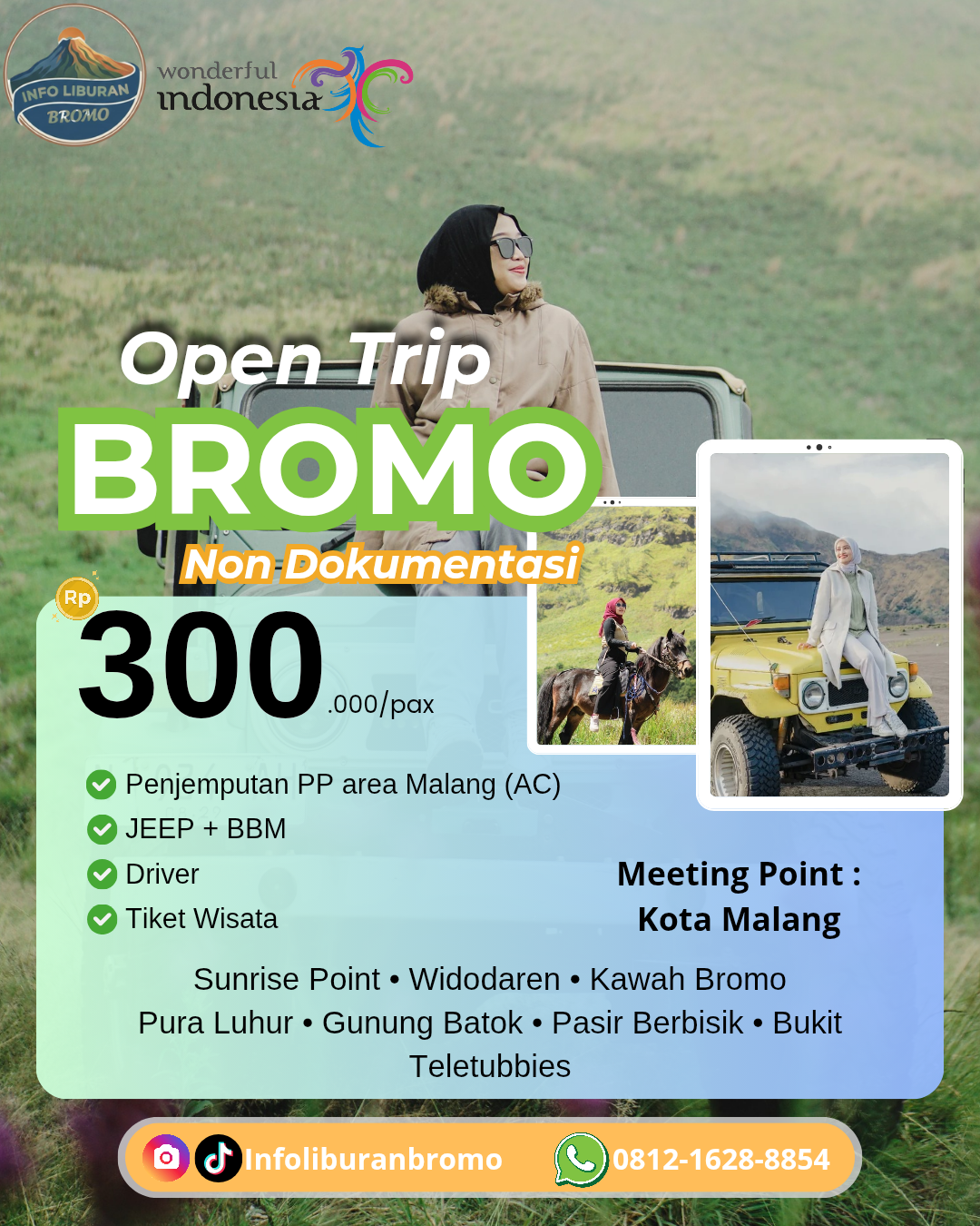 Paket Wisata Bromo – Sunrise, Jeep 4×4, Penjemputan Malang